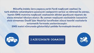 Müvafiq indeks üzrə yaşayış yerini fərdi nəqliyyat vasitəsi ilə tərk etdikdə vətəndaşlara şəxsiyyət vəsiqəsinin seriya və nömrəsi ilə yanaşı, həmin SMS mətninə nəqliyyat vasitəsinin dövlət qeydiyyat nişanını da əlavə etmələri tövsiyə olunur. Bu zaman nəqliyyat vasitəsinin icazəsinin olub-olmaması Daxili İşlər Nazirliyi tərəfindən xüsusi texniki vasitələrlə avtomatik formada yoxlanılacaqdır. SMS mətni nümunədə göstərildiyi şəkildə formalaşdırılmalıdır. İcazə indeksi, boşluq, şəxsiyyət vəsiqəsinin seriyası və nömrəsi, boşluq, nəqliyyat vasitəsinin dövlət qeydiyyat nişanı. SMS mətninin düzgün formalaşdırılması üçün boşluqlardan qeyd olunan şəkildə istifadə etmək mütləqdir. Həmçinin xarici, tranzit, səfirlik və.s dövlət qeydiyyat nişanları olan nəqliyyat vasitələri üçün də eyni qaydada icazə əldə etmək mümkündür.