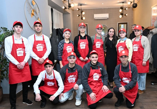 BAKU.WS xəbər verir ki, əvvəlcə Leyla Əliyeva "Bizim Mətbəx" layihəsinin könüllüləri ilə birlikdə yeməklərin iftar süfrəsi üçün hazırlanmasında yaxından iştirak edib.