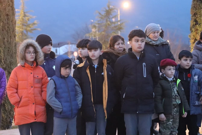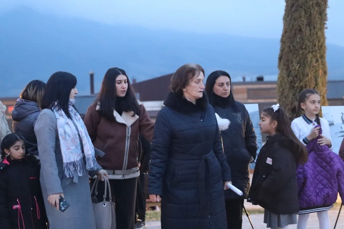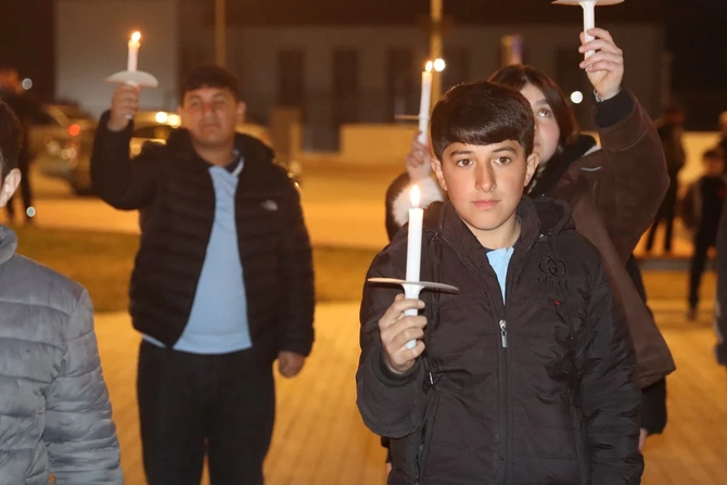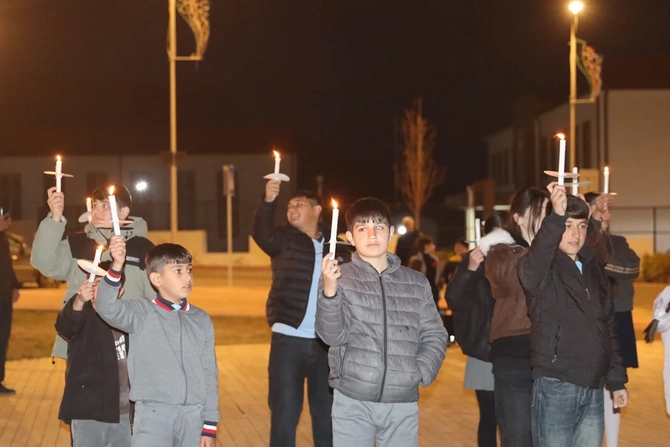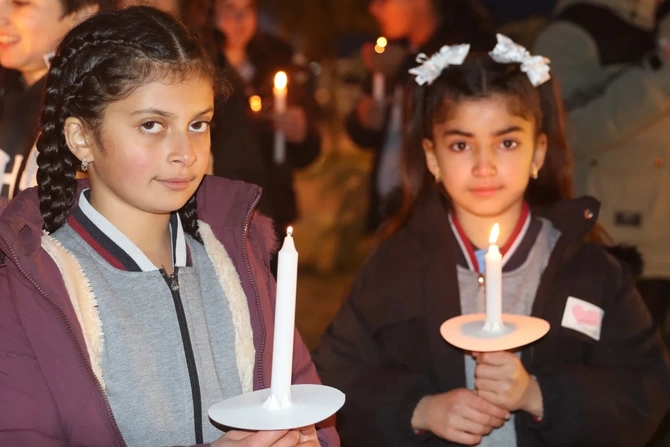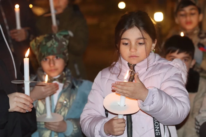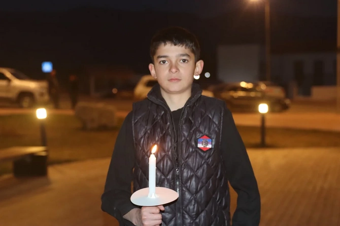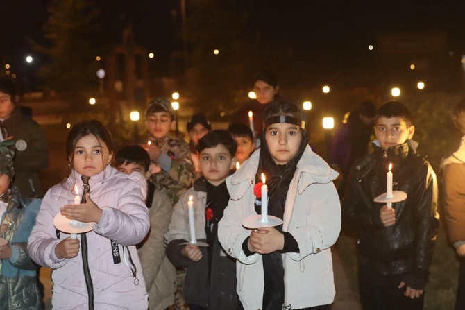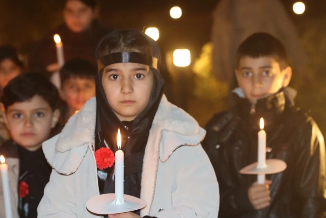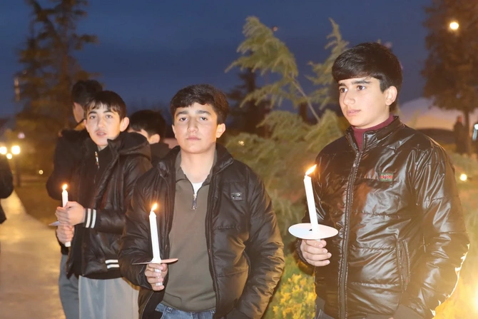 Şagirdlər əllərində şam heç vaxt böyüməyən 63 uşağın adını səsləndirərək, onları doğma torpaqda - Xocalıda anıblar.