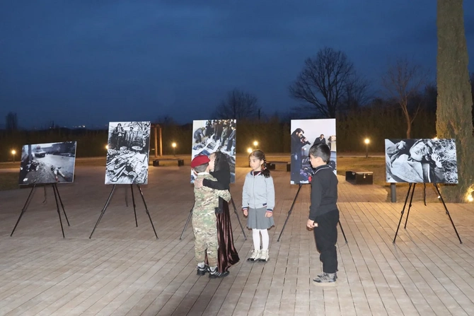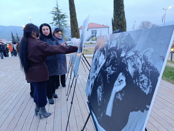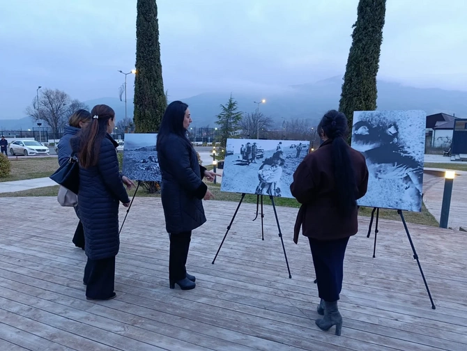 Flaşmob çərçivəsində Xocalı dəhşətini əks etdirən fotosərgi də təşkil olunub.