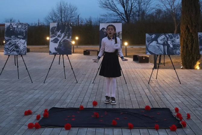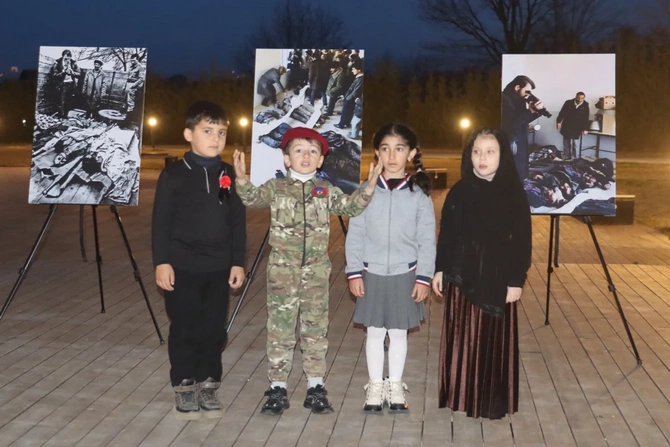 Xocalı şəhərində Xocalı faciəsinin 34-cü ildönümü ilə bağlı soyqırım qurbanlarının xatirəsinə həsr olunmuş flaşmob keçirilib.