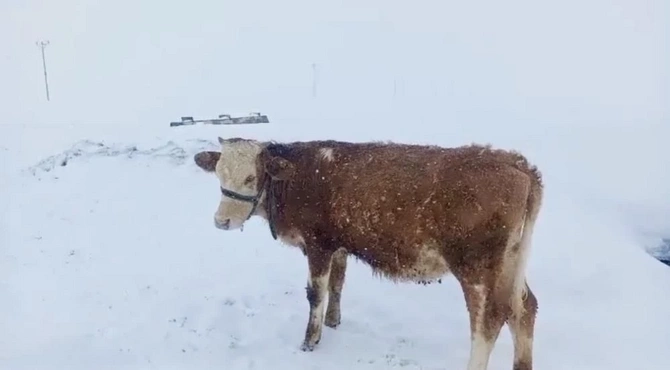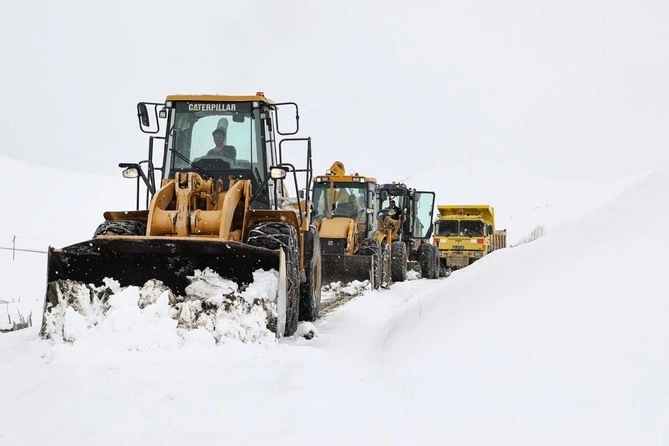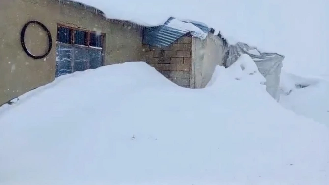 BAKU.WS "Haber Global"a istinadən xəbər verir ki, Diyadin bölgəsinin Dedebulak kəndinə yağan qarın hündürlüyü adam boyunu ötüb.