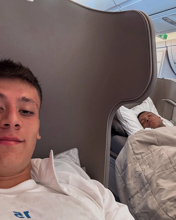 Maraqlı olan odur ki, bu foto matç qutlaması və ya məşq zamanı çəkilmiş bir an deyil, təyyarədə çəkilmiş fərqli bir görüntüdür. Fotoşəkildə Mbappé dərin yuxuda ikən, Arda Güler kameraya gülərək Fransız ulduza kiçik bir zarafat etmənin həzzini yaşayır.