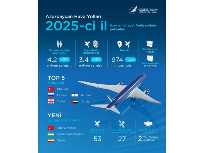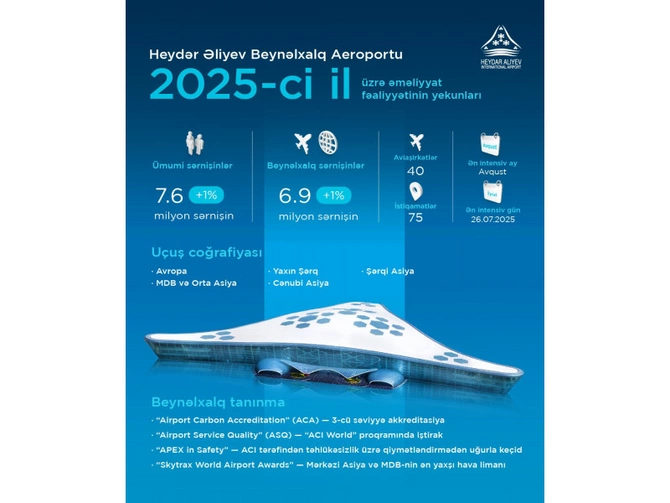 3,4 milyon sərnişin isə beynəlxalq istiqamətlərdə səfər ediblər. Bu, 2024-cü illə müqayisədə 3 % çoxdur.