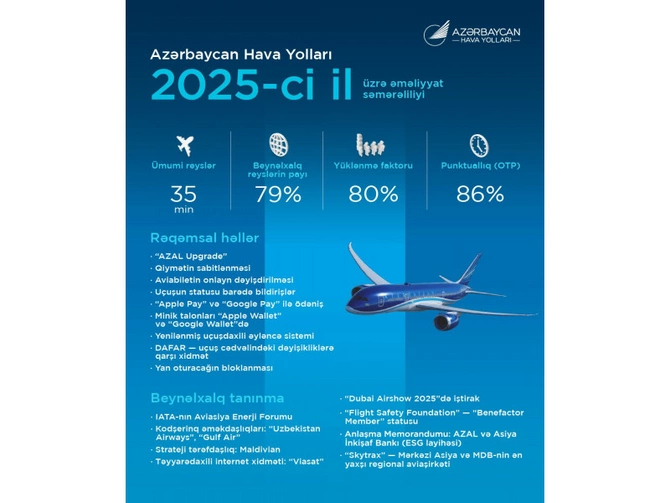 2025-ci ildə "Azərbaycan Hava Yolları" QSC (AZAL) 4,16 milyon nəfər sərnişin daşıyıb.