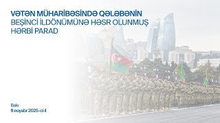 Vətən müharibəsində Qələbənin beşinci ildönümünə həsr olunmuş hərbi paradhttps://t.co/cawTwnrIE5 pic.twitter.com/Q1bkNAU4UC