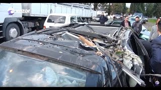 Lənkəranda palıd ağacı hərəkətdə olan maşının üstünə aşdı - VİDEO