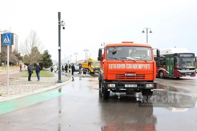 Ərazidə su nasosları, xüsusi texniki qurğular və ehtiyac olan yerlərə ağır texnikalar cəlb olunub.