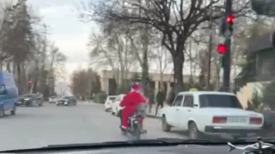 İsmayıllı rayonunda "Şaxta baba" geyimində olan şəxs işıqforun qaydalarına tabe olmayıb.