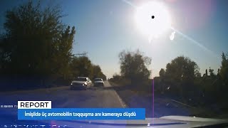 Azərbaycanda üç avtomobil toqquşdu - qəza anı kameraya düşdü - VİDEO