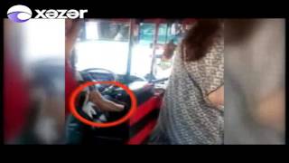 Bakıda sürücü tum çıtlayaraq avtobusu idarə edir - VİDEO