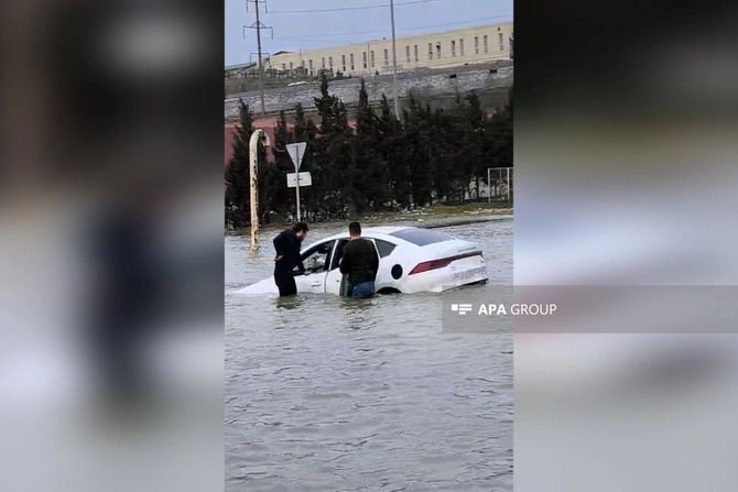 Bu gün Bakı–Sumqayıt magistral yolunda hərəkətdə olan minik avtomobili idarəetmədən çıxaraq Xırdalan ərazisində yağış suları nəticəsində yaranmış gölməçəyə düşüb.