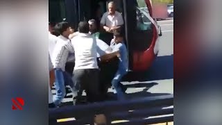 Bakıda avtobus sürücüləri sərnişinləri düşürüb əlbəyaxa dava etdilər - VİDEO