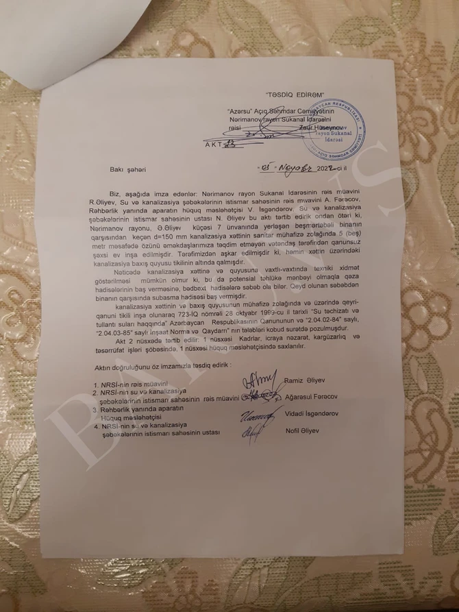 Sakinlər iddia edirlər ki, ərazidəki yaşayış binası qanunsuz tikilidir və o, su quyusunun üzərində inşa olunub.