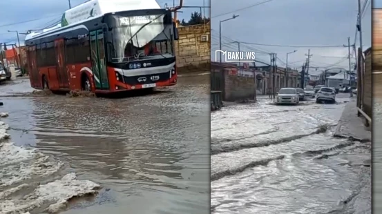 Sakinlərin sözlərinə görə, güclü yağıntıdan sonra yolda iri su gölməçələri yaranıb. Avtobuslar və minik avtomobilləri çətinliklə hərəkət edir, piyadalar isə yolu keçməkdə problem yaşayırlar.