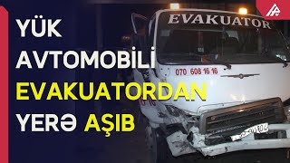 Bakıda evakuator daşıdığı yük avtomobilini piyadanın üzərinə aşırdı - FOTO/VİDEO