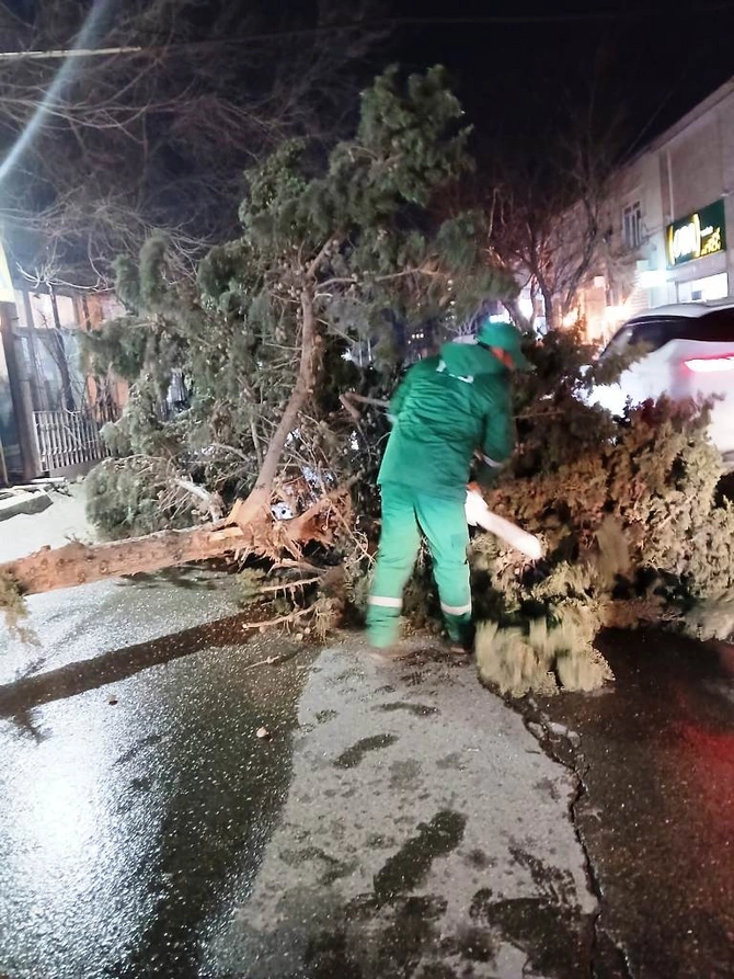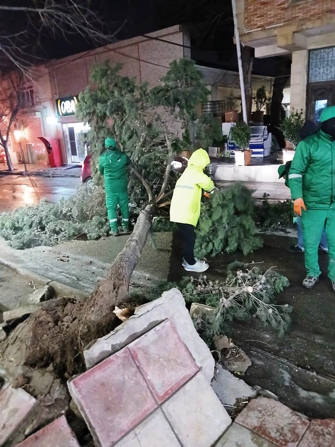 Bildirilib ki, sınan ağaclar və qırılan budaqlar birliyin növbətçi briqadaları tərəfindən operativ şəkildə götürülüb və ərazi təmizlənib.