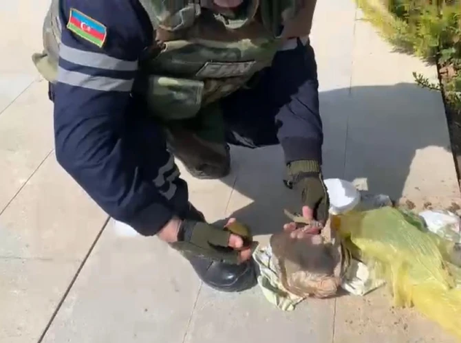 Sursat XRXX-nin çevik qrupunun mütəxəssisləri tərəfindən zərərsizləşdirilməsi üçün ərazidən götürülərək kənarlaşdırılıb.