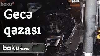 Bakıda lüks avtomobil işıq dirəyinə çırpıldı: Yaralılar var - VİDEO