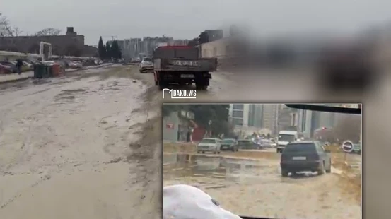 Bildirilib ki, söhbət metronun "Ulduz" stansiyasının yaxınlığındakı yoldan gedir. Ərazidə iri çalalar palçıq və yağış suyu ilə dolub. Bu da həm piyadaların, həm də sürücülərin işini xeyli çətinləşdirib.