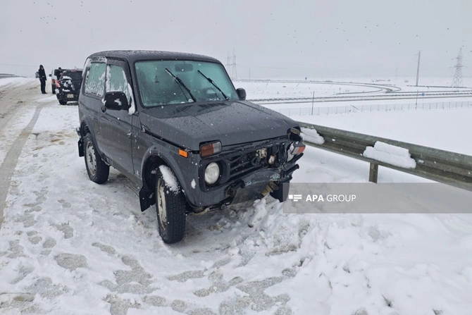 Cəlilabadda qarlı hava yol qəzalarına səbəb olub