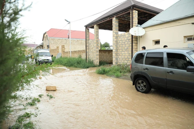 Belə ki, Gəncə şəhər Mənzil Kommunal Təsərrüfatı İstehsalat Birliyinin və Fövqəladə Hallar Nazirliyinin yerli regional qurumlarının əməkdaşları tərəfindən evlərə dolmuş yağış sularının ərazidən xaric edilməsi istiqamətində zəruri tədbirlər davam etdirilir. Qısa vaxt ərzində yağış sularının evlərdən tamamilə çıxarılması təmin ediləcəkdir.