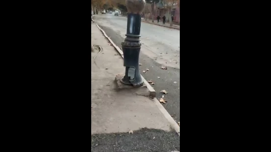 Gəncədə təhlükə saçan qəzalı işıq dirəyi - VİDEO