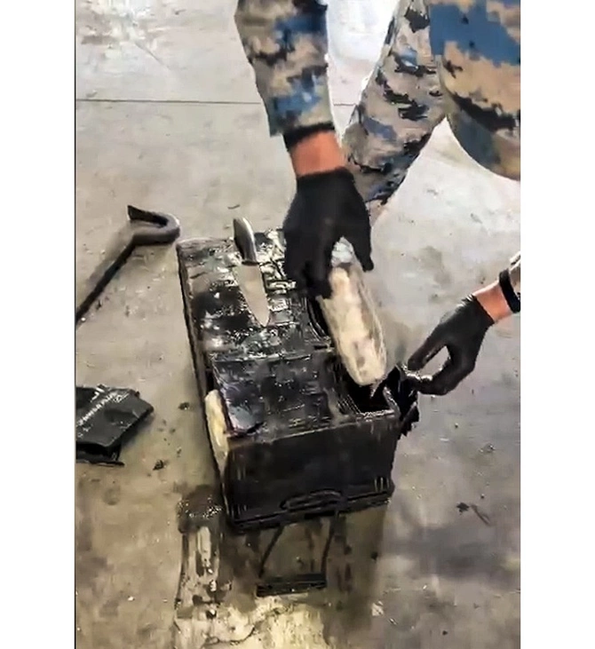 Yoxlama zamanı akkumulyatorun içərisinə malların aşkarlanmasını çətinləşdirən üsulla yerləşdirilmiş 6 ədəd sellofan paketdə ümumilikdə təmiz çəkisi 5 kiloqram 254,397 qram olan xüsusilə külli miqdarda psixotrop maddə - metamfetamin aşkar edilib.