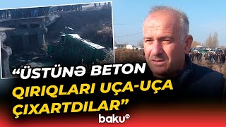 "Kənd camaatı üstünə beton qırıqları uça-uça cənazəni buradan çıxardılar. Üç uşaq başsız qalıb. İki ilə yaxındır ki, bu körpü bu vəziyyətdədir. Bütün aidiyyəti qurumların xəbəri var idi. Bütün kanallarda, sosial şəbəkələrdə bu haqda çəkilişlər olub. Keyfiyyətsiz bir xırda yamaq qoyublar, o da bu vəziyyətə gətirib çıxardı".