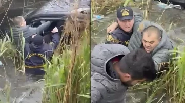 Baş Dövlət Yol Polisi İdarəsi əməkdaşları sürücünü sudan çıxarmaq üçün səy göstəriblər.