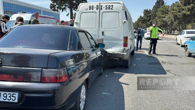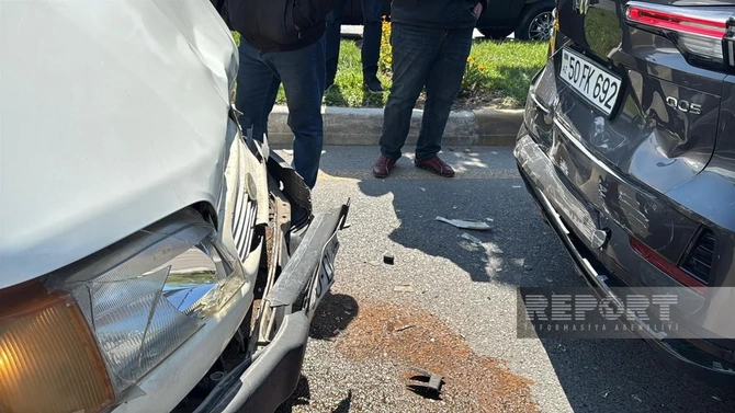 "Ford" markalı yük avtomobili ilə "Changan", "Mazda" və "Lada" markalı minik maşınlarının toqquşması nəticəsində nəqliyyat vasitələrinə ciddi ziyan dəyib.