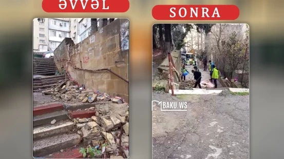 Xətai rayonunda, Cavanşir küçəsi 31 ünvanı ilə Məhəmməd Hadi 106-nın kəsişməsində istinad divarlarından qoparaq yola tökülən daşlar ərazidən təmizlənib.