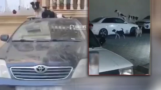 Xırdalanda sahibsiz itlər həm sakinlərə, həm də avtomobillərə hücum edir - VİDEO