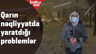 Bakıda gecə sakinlər parklara axın etdi - şəhərdə qar sevinci - VİDEO