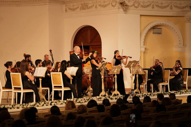 BAKU.WS xəbər verir ki, Müslüm Maqomayev adına Azərbaycan Dövlət Akademik Filarmoniyasının səhnəsində tanınmış skripkaçı və dirijor Dmitri Sitkovetskinin rəhbərliyi ilə həm yerli ulduzlar, həm də müxtəlif ölkələrdən gəlmiş istedadlı ifaçılar çıxış etdilər.