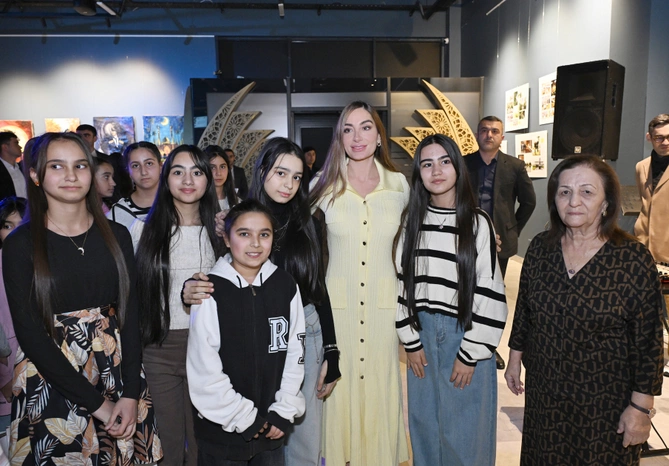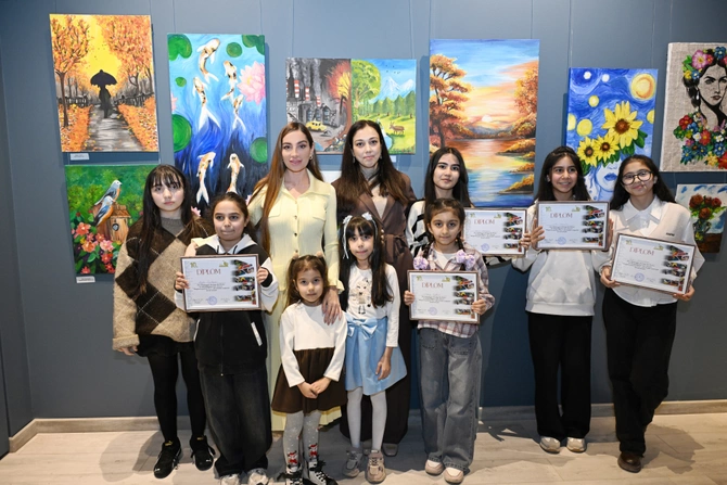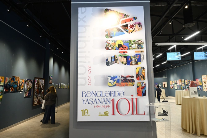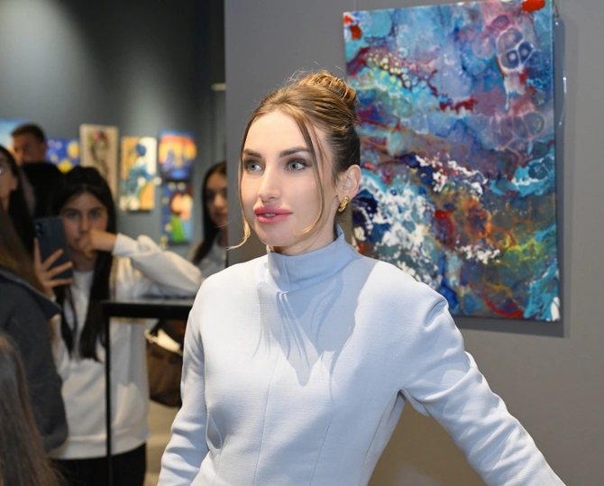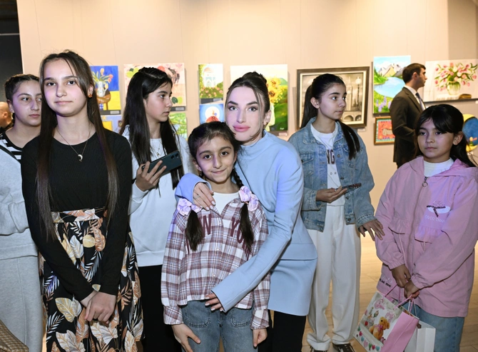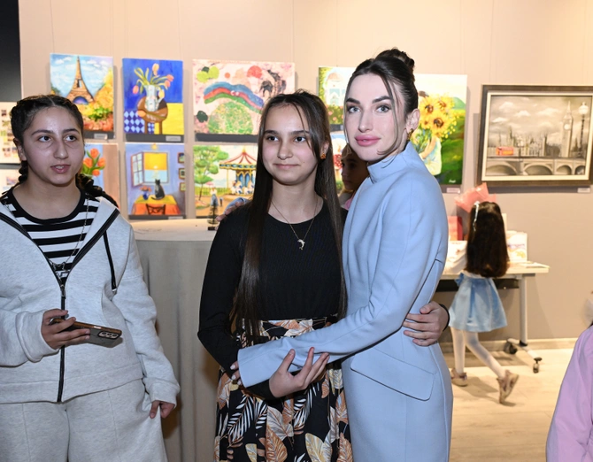 Arzu Əliyeva və Alena Əliyeva "Rənglərdə yaşanan 10 il" mövzusunda keçirilən sərgidə iştirak ediblər