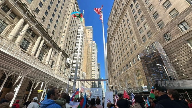 BAKU.WS report-a istinadən xəbər verir ki, üçrəngli bayrağımız Nyu-York şəhərinin simvolu və maliyyə mərkəzi hesab olunan, turistlərin ən çox ziyarət etdiyi küçələrdən birində "Wall Street"də yerləşən "Bowling Green" parkında nəhəng bayraq dirəyindən asılıb.
