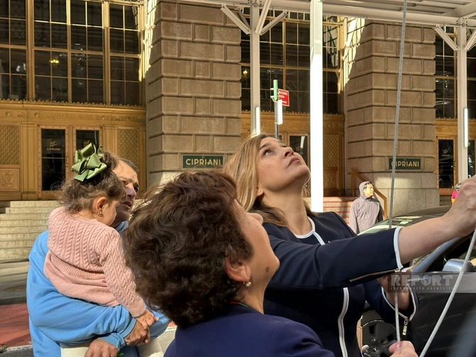 Daha sonra üçrəngli bayrağımız Dövlət Himnimizin sədaları altında Nyu-York səmasına qaldırılıb, Azərbaycanın və ABŞ bayraqları səmada birlikdə dalğalanıb.