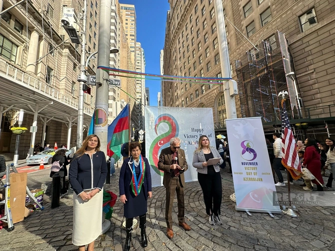 ABŞ-nin Nyu-York şəhərində 8 Noyabr - Azərbaycanın Zəfər Gününün 5-ci il dönümü münasibəti ilə ölkəmizin dövlət bayrağı qaldırılıb.