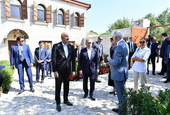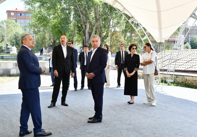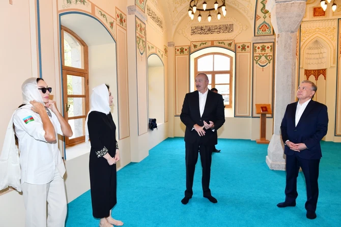 Dövlət başçıları və xanımları Saatlı məscidində olub, Heydər Əliyev Fondu tərəfindən bərpa edilən Yaradıcılıq Mərkəzində “Heydər Əliyev və Qarabağ” sərgisinə, Azərbaycanın tanınmış şəxsiyyətləri Natəvan, Bülbül və Üzeyir Hacıbəylinin işğal dövründə Şuşada ermənilər tərəfindən gülləbaran edilmiş heykəllərinə baxıblar.