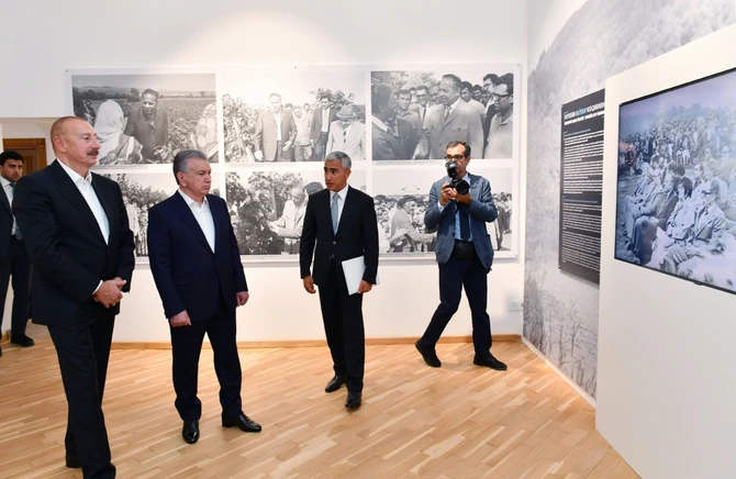 Sonra prezidentlər və xanımları Heydər Əliyev Fondu tərəfindən bərpa edilən Yaradıcılıq Mərkəzində “Heydər Əliyev və Qarabağ” sərgisinə baxıblar.