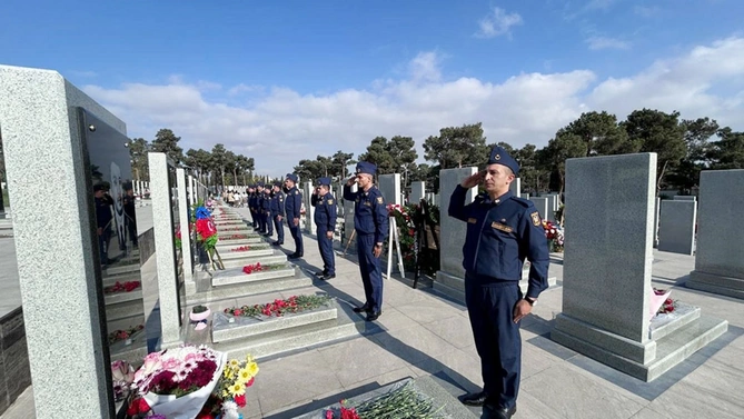 Tədbirlərdə hərbi qulluqçular şəhidlər xiyabanlarını ziyarət edərək Vətən uğrunda canından keçmiş igid döyüşçülərimizin məzarları üzərinə güllər düzüb, xatirələrini hörmət və ehtiramla yad ediblər.
