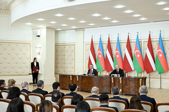 Azərbaycan və Latviya prezidentləri mətbuata bəyanatlarla çıxış edirlər