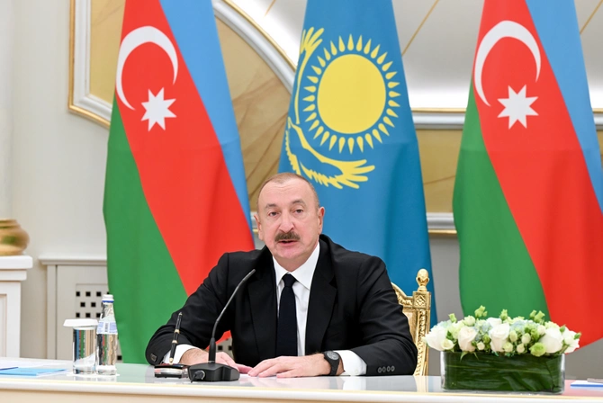 Azərbaycan və Qazaxıstan prezidentləri mətbuata bəyanatlarla çıxış ediblər