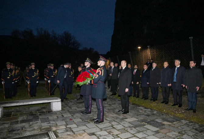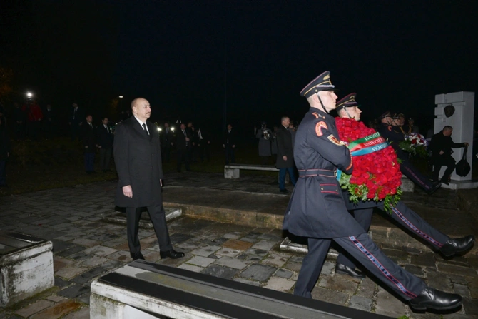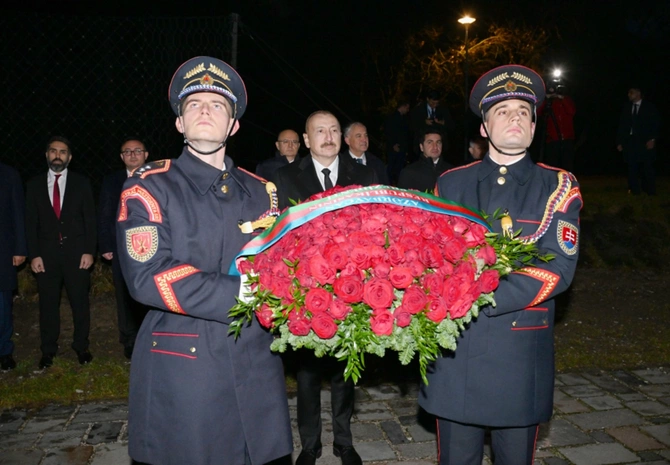 Prezident İlham Əliyev və Prezident Peter Pelleqrini abidənin önünə əklil qoydular.
