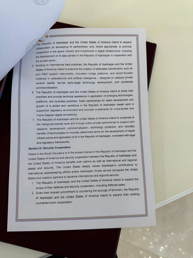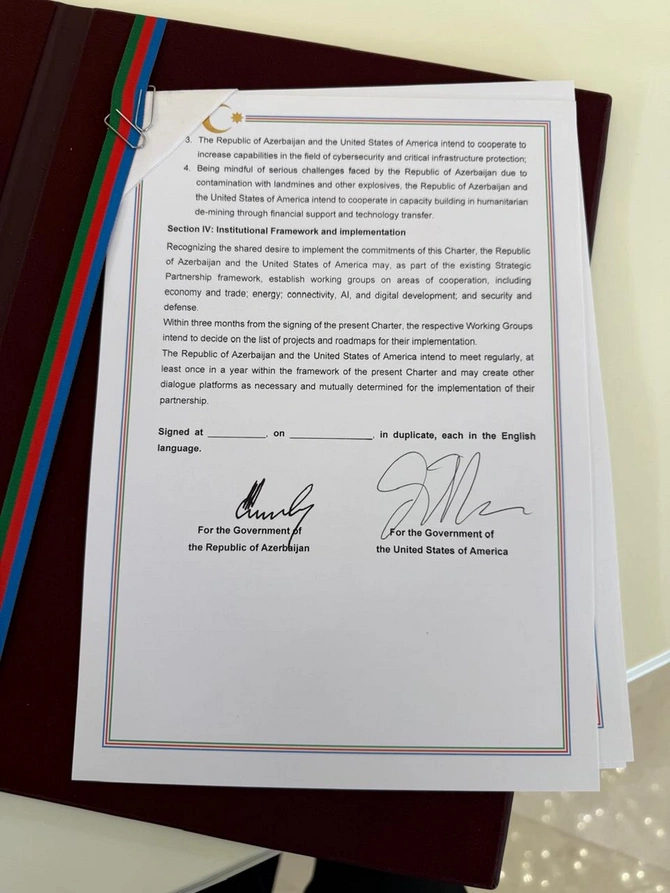 Azərbaycanla ABŞ arasında fevralın 10-da Strateji Tərəfdaşlıq Xartiyası imzalanıb.