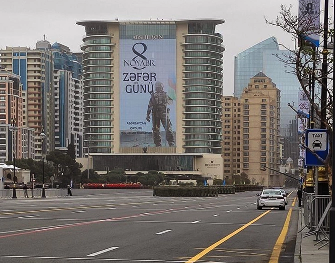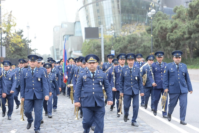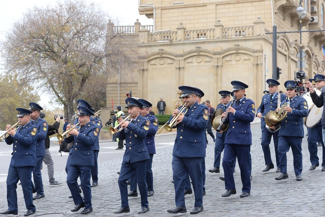 Bakıda 8 Noyabr – Zəfər Günü münasibətilə hərbçilərin hərbi orkestrin müşayiəti ilə zəfər yürüşü keçirilir.