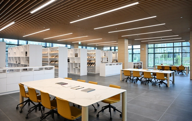 Tədris korpuslarında sinif otaqları ilə yanaşı, müasir texnologiyalara əsaslanan, İtaliyanın Bolonya Universiteti və Milan Politexnik Universiteti ilə birgə qurulmuş 6 tədqiqat və 7 tədris məqsədli laboratoriya da fəaliyyət göstərəcək. Burada memarlığa aid materiallardan ibarət kitabxana, şəhərsalma, landşaft və foto-video studiyaları, müxtəlif dizayn emalatxanaları yerləşir. Yeni binalarda qurulmuş tədris emalatxanası isə dərslərin praktiki tədrisi üçün bir məkandır. Burada müxtəlif növ materiallarla işləmək üçün texnoloji və rəqəmsal imkanlar yaradılıb. Tədris emalatxanası tələbələr və tədqiqatçıların bir yerdə işlədiyi məkandır. Onların birgə əməyinin nəticəsi isə xüsusi Dizayn və yaradıcılıq mərkəzi vasitəsilə sənaye və biznes strukturlarına çatdırılacaq. Bir sözlə, bura tədris və tədqiqatın real iş dünyası ilə birləşdiyi mərkəzdir.