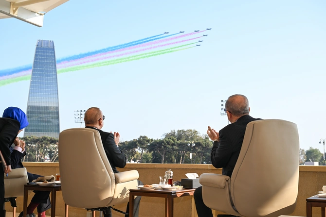 Müharibədən və şanlı Zəfərimizdən bir il sonra tarixi Şuşa şəhərində Türkiyə və Azərbaycan prezidentləri Şuşa Bəyannaməsini imzalayaraq bizim əlaqələrimizi ən yüksək zirvəyə - müttəfiqlik səviyyəsinə qaldırmışlar. Bu gün bizim hərbi paradda Türkiyə hərbçilərinin iştirakı birliyimizin növbəti təzahürüdür.