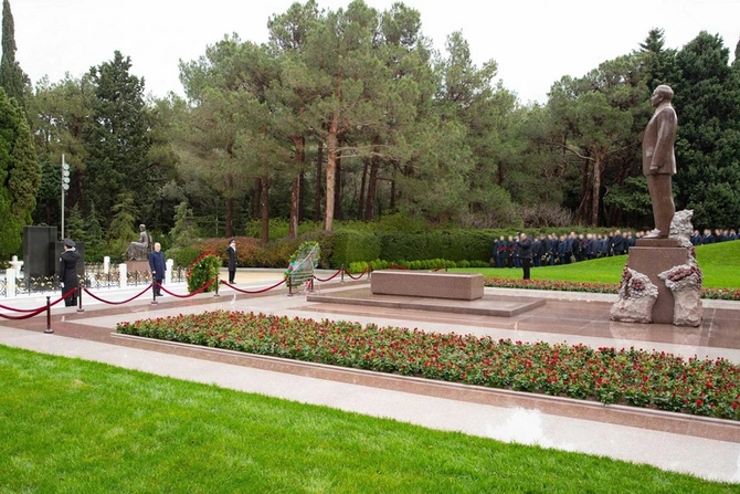 DTX-nin Mətbuat xidmətindən BAKU.WS-ə verilən məlumata görə, Heydər Əliyevin və görkəmli oftalmoloq-alim, akademik Zərifə xanım Əliyevanın məzarları üzərinə gül dəstələri qoyulub.